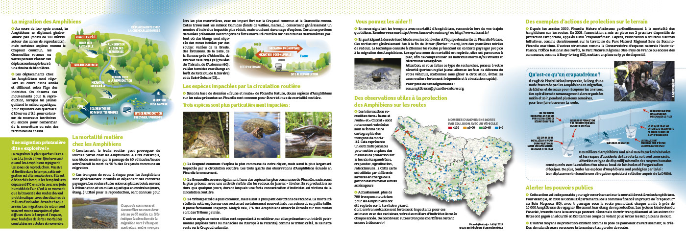 Création d'un dépliant 4 volets pour Picardie Nature. Création d'illustrations et infographies.