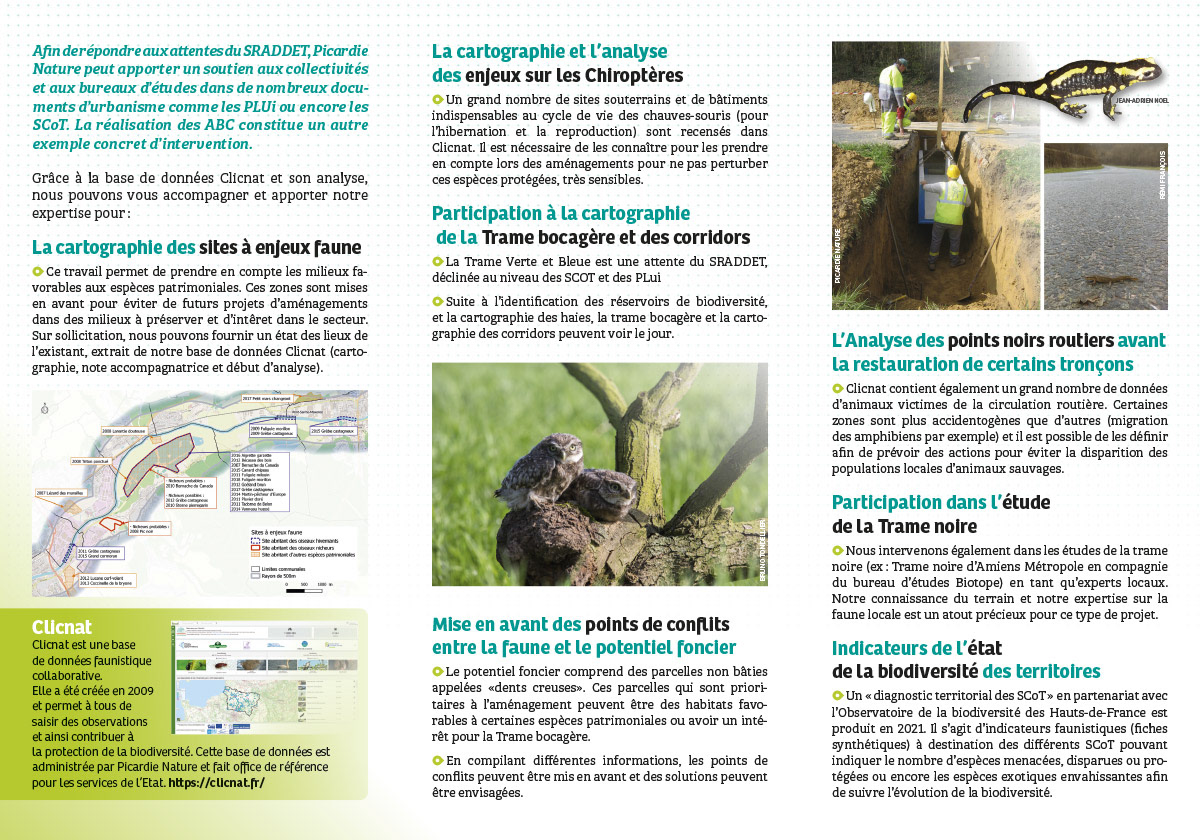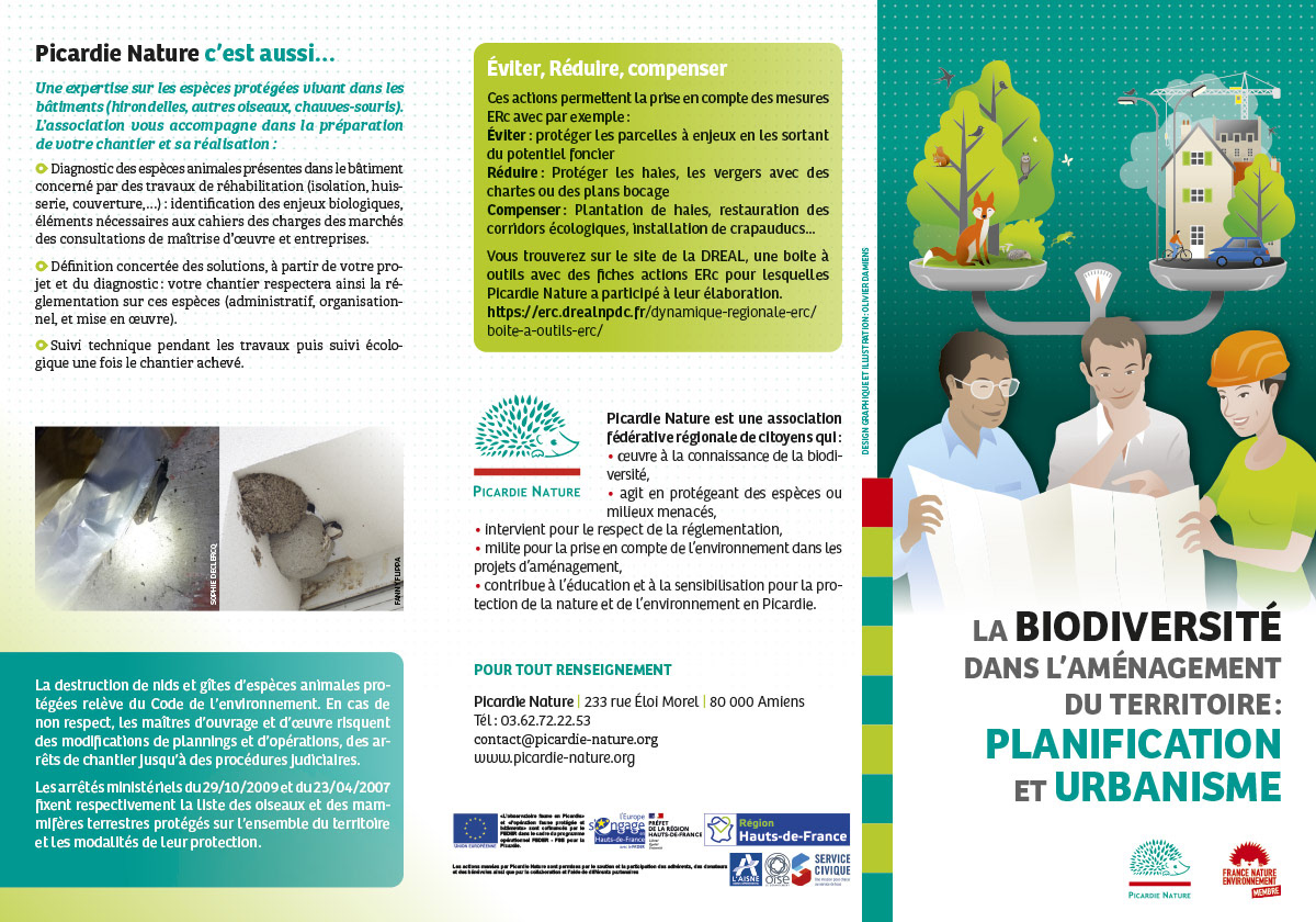 Création d'un dépliant 3 volets pour Picardie Nature. Création d'une illustration.