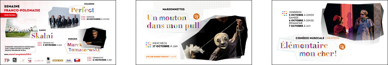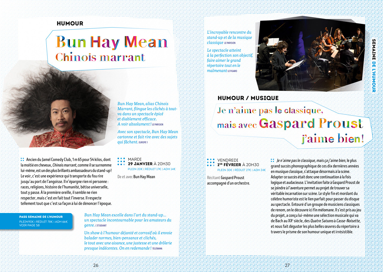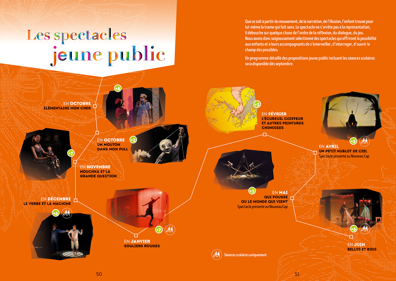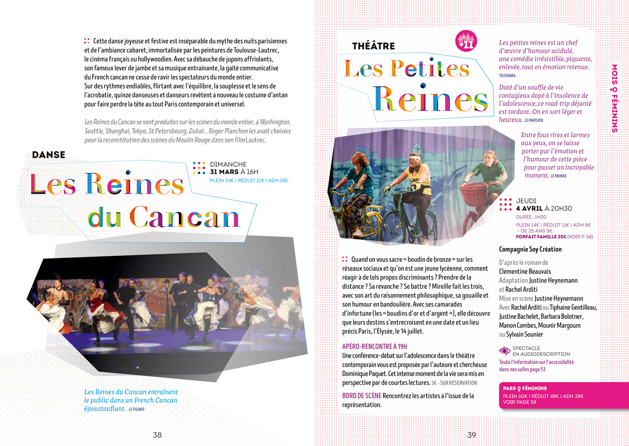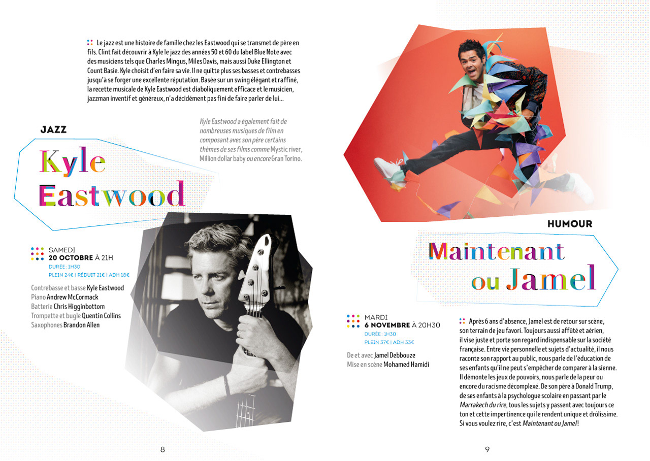 Création graphique saison 2018-2019. Création d'une typographie "Colorfont", je l'ai nommé Ditika, rencontre de la Didot et de l'Helvetica., chaque lettre à plusieurs varantes colorées.